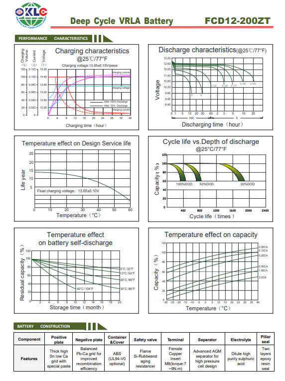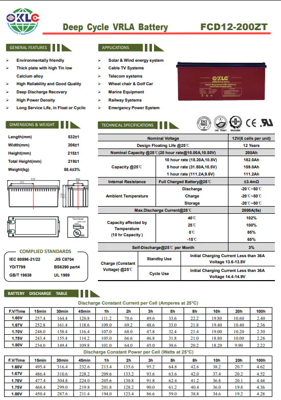 200 Ah 12v KLE-FCD-200AGM AGM Deep Cycle Battery