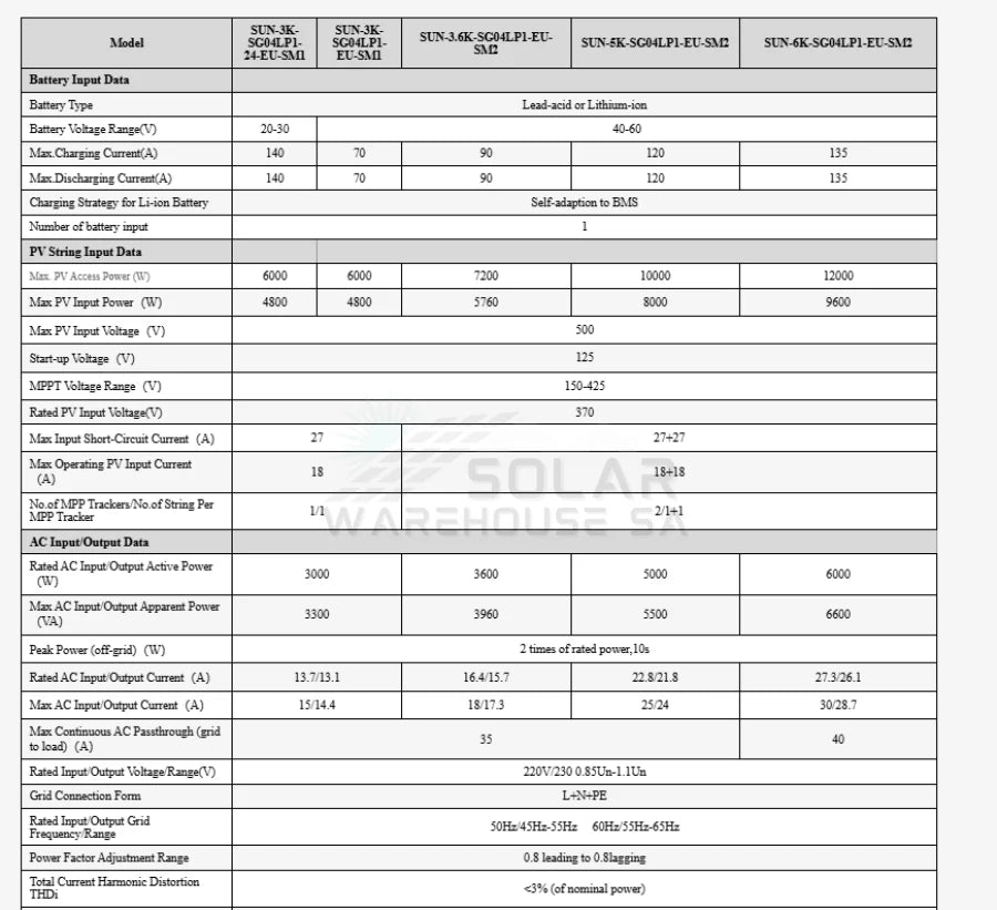 Inverter Specifications: