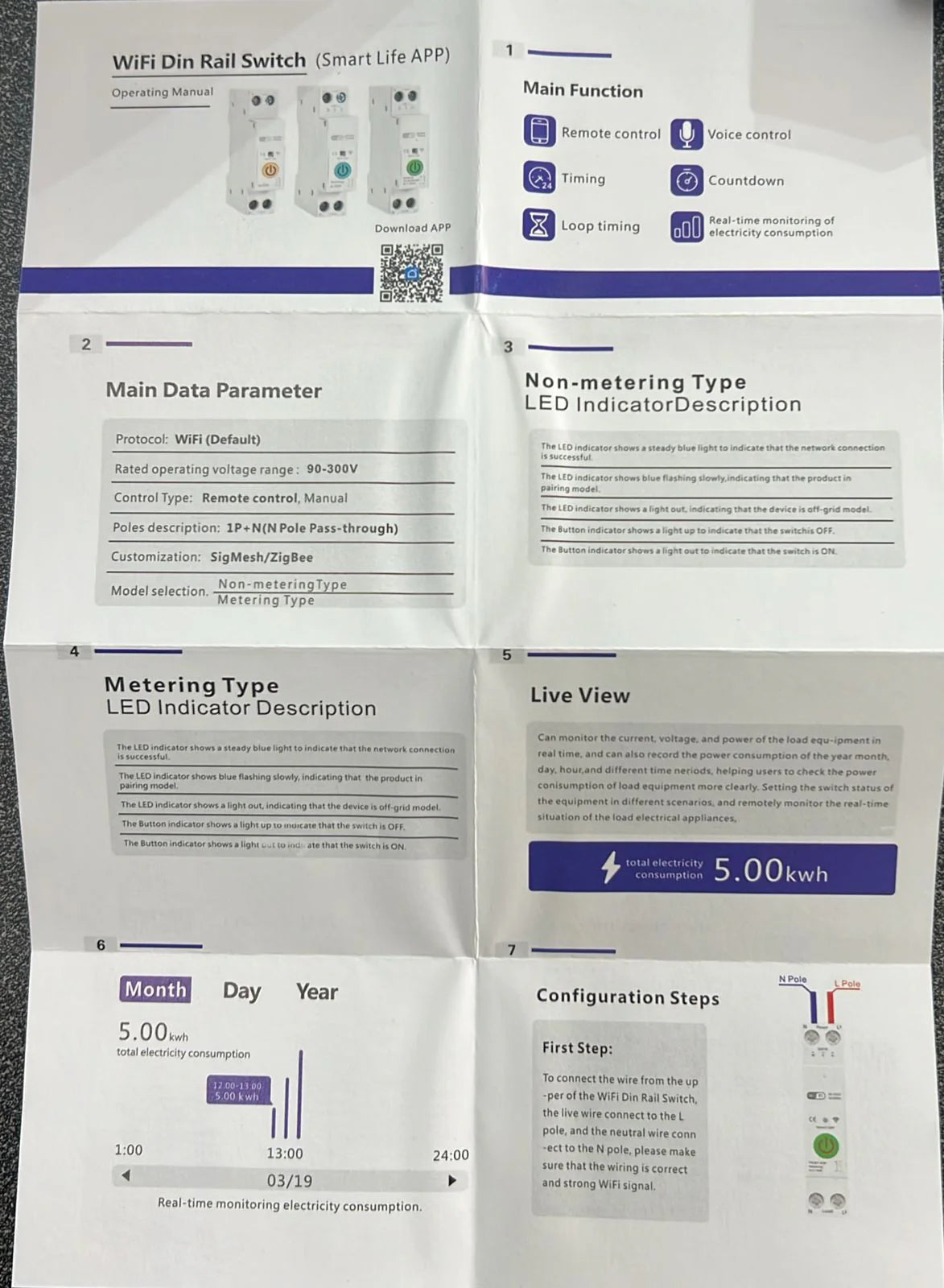 - Smart Switch Circuit Breaker (MCB) 1 Pole DIN rail mount.