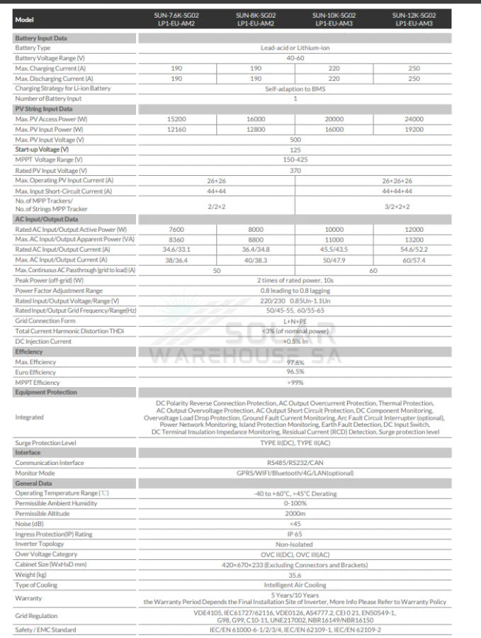 Deye 10KW Hybrid Inverter Including Wifi Dongle (SUN-10K-SG02LP1-EU-AM3)