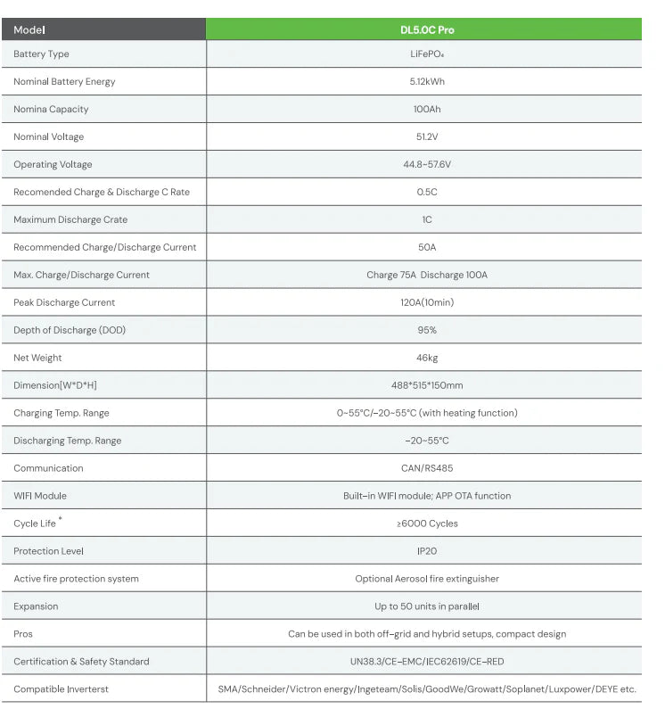 DYNESS Lithium Battery DL5.0C PRO 5.12 kWh 51.2V