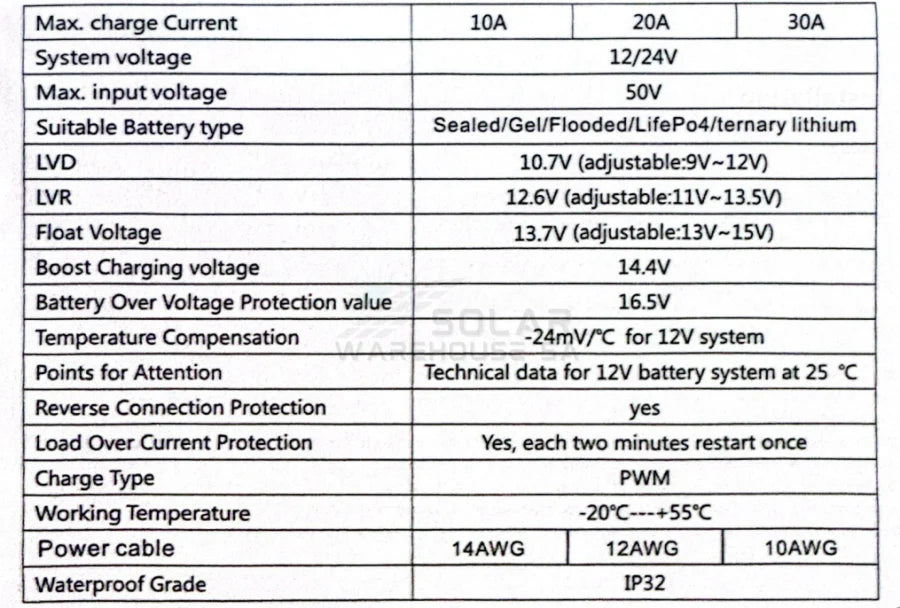 - Max PV Input Power : 130w (12v) 260w (24v)