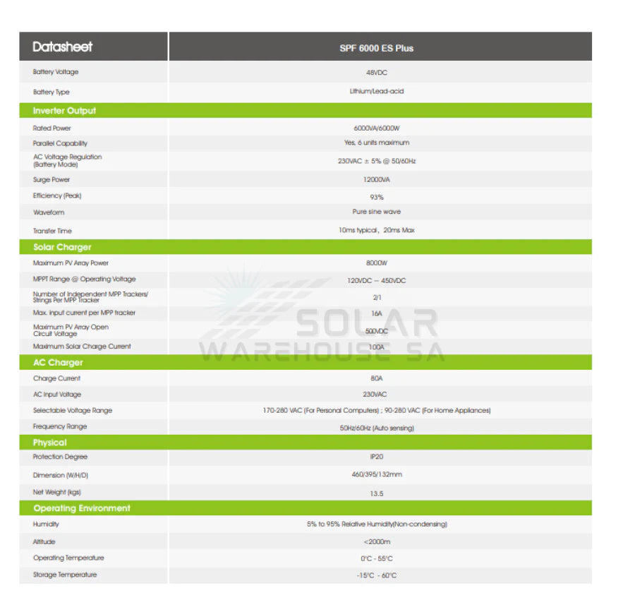 - Rated Power: 6000VA/6000W